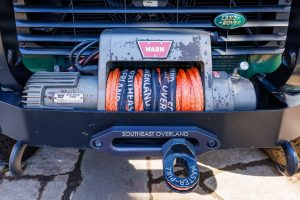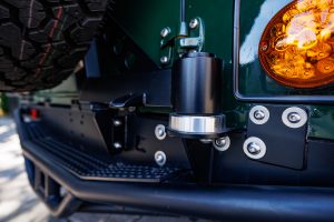 Additionally, this Defender has been lavishly outfitted with compressor-driven front and rear pneumatic differential locks from ARB. This system supplements the two-speed transfer case and locking center diff that the truck included as standard. A massive upgrade to off-road capability, the system can activate a locking mechanism in either differential from the comfort of the driver’s seat without affecting highway drivability.