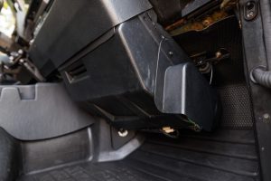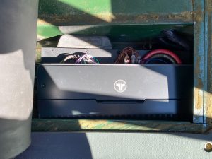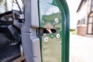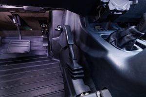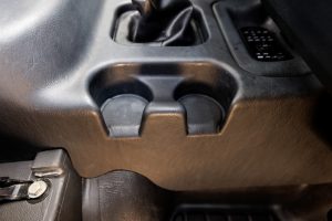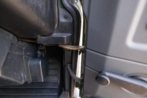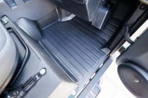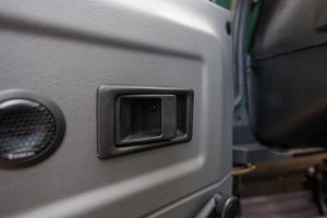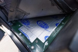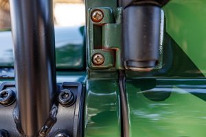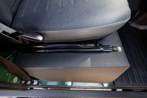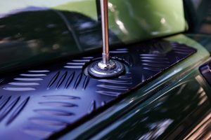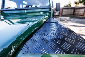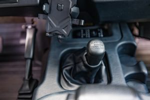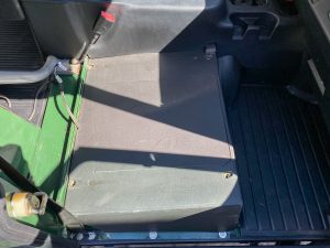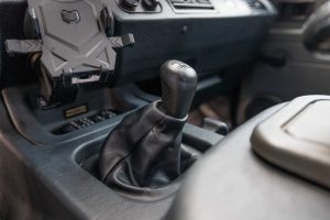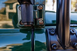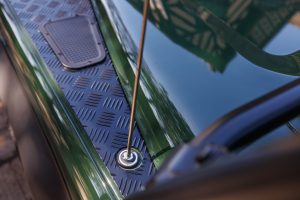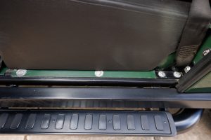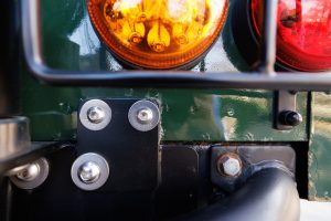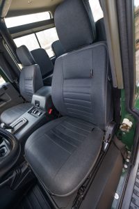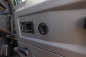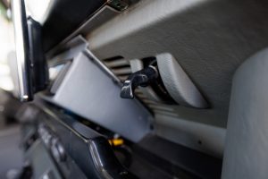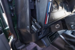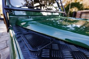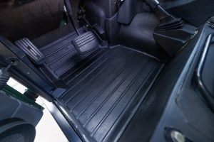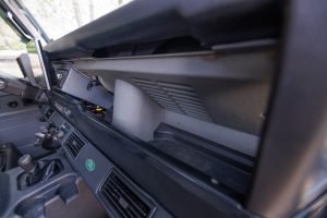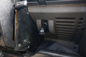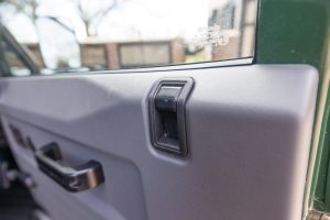 All North American Specification Defender 90 Land Rovers were built as left-hand drive, contrary to many other Defenders you’ll see imported to the United States. The interior of the Defender is as purposeful as the exterior, with plastic door panels and recently replaced Exmoor Trim vinyl interior upholstery. Lifting the rubber floor mats on this well-preserved truck, you’ll find stainless steel fasteners replace the typically rusty originals. Dynamat sound deadening has been installed to create a quieter interior. The tub under the front seats is covered by thick, durable rubber mats from Exmoor Trim.