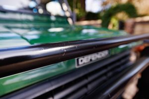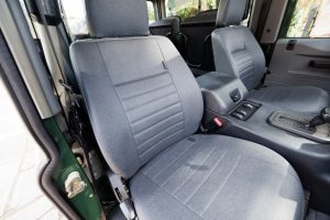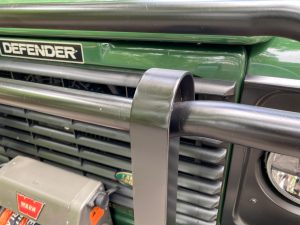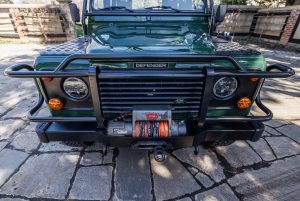 The overall condition of the body on this Defender 90 is very good with a few small chips and dings acquired over the last few years. Based on our observation, it would appear that the truck has been repainted — at least partially — in its original color of Coniston Green. We’re told that only 337 D90 Station Wagons were delivered to North America in this color in 1997. Wing protectors have been fitted to the tops of the fenders, and a brush bar with bumper-mounted WARN winch sits just ahead of the front grill.