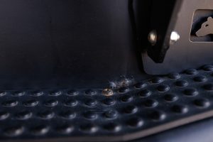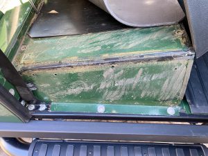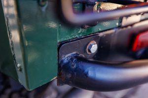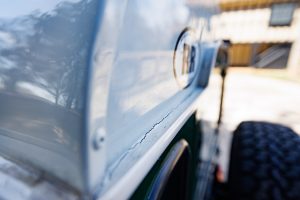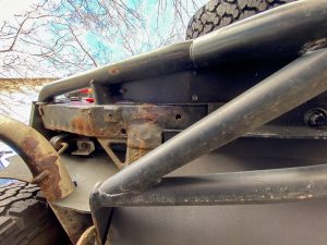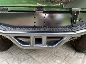 The steel frame of the Land Rover is notorious for rusting into oblivion. Looking at this truck’s chassis, you’ll find a very solid frame with spots of light surface rust on some hardware and edges. The rear cross-member, a common rust point, had some surface rust and penetration on the driver and passenger side where it connects to the frame rails, however this was recently professionally repaired in preparation for sale.
