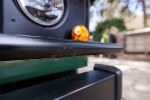 While the aluminum tub of the Land Rover does not rust, corrosion is still possible. A few small areas of paint separation are visible in a few areas around the body and bumpers, as this Defender has been driven and enjoyed as intended for the past few years. Regardless, this Defender presents beautifully in person.