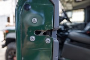 Exterior changes for the NAS Defenders included an integrated safari cage, side marker lights, and larger tail lights. Alloy wheels were also standard, and the cars were fitted from the factory with B.F. Goodrich All Terrain tires.