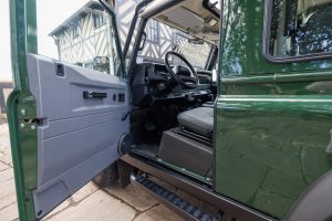 This Defender 90 wears its original color of Coniston Green and proudly displays the production number of “0567” on its rear data plate. Motivation is provided by a Rover-derived 4.0 V8 engine utilizing distributorless electronic fuel injection producing a respectable 182hp and 232 lb-ft of torque. All 1997 Defenders were built with ZF 4-speed automatic transmission, marking the first time a Defender with an auto box was produced for any country. The LT230 transfer box provided full-time 4WD with a center differential lock.