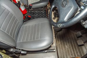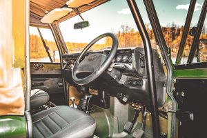 This Wolf’s engine was replaced during refurbishment, as you certainly wouldn’t want your ceremonial Land Rover breaking down in the middle of a procession. Turn the key, wait for the glow light to extinguish, and this Wolf’s engine fires up without hesitation.