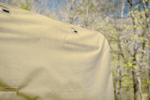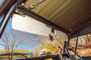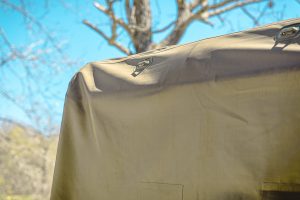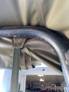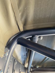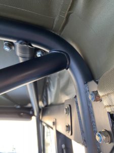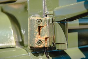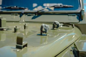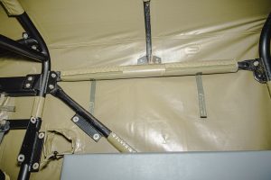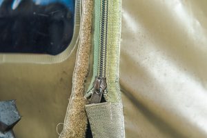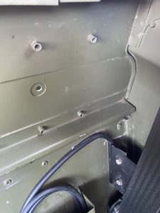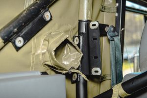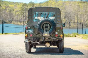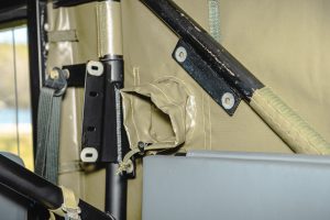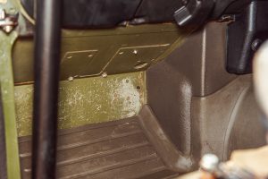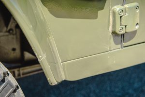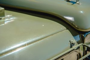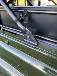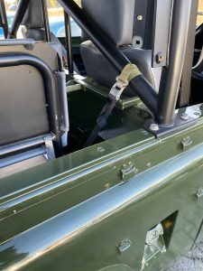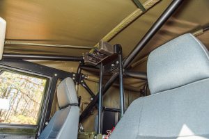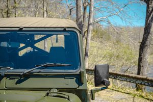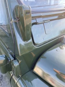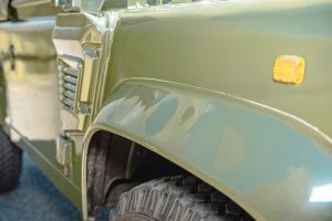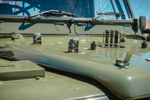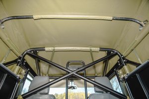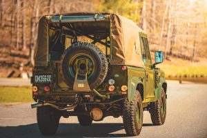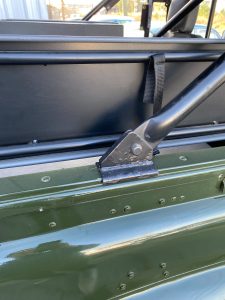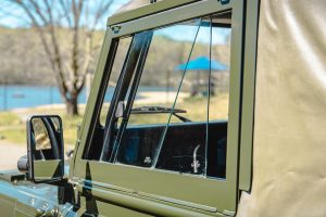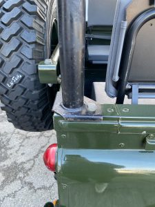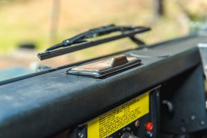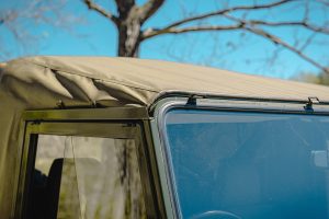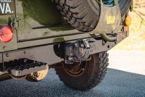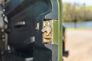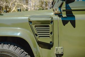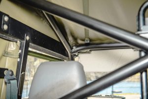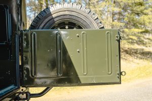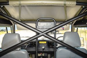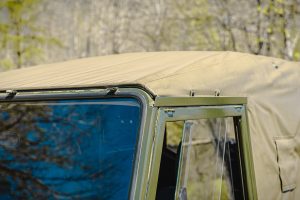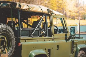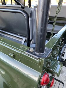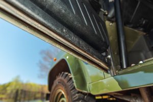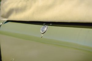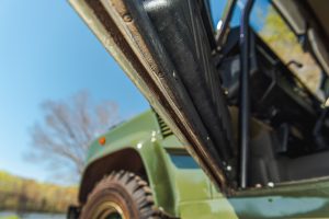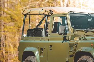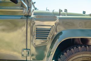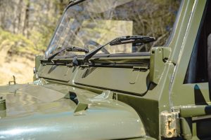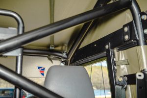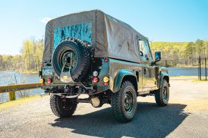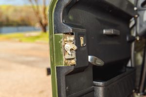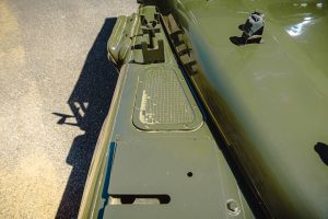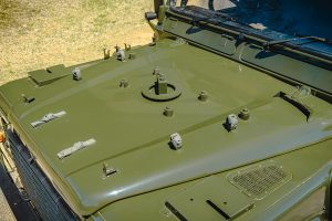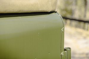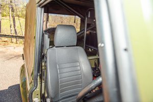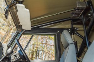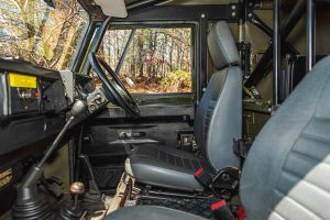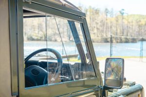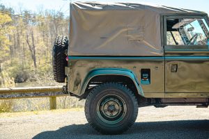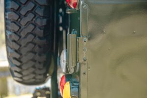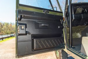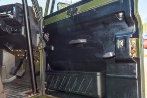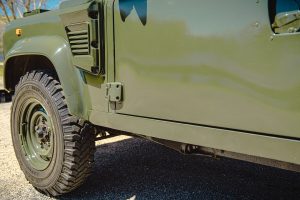 The exterior of this Land Rover Wolf shows well given it was recommissioned over 8 years ago and has made a journey across the pond to the USA. Some paint chips are visible in various areas around the body, with some light rust stains in hinge areas. The body of the Land Rover Defender Wolf is aluminum, so one needn’t worry about rot on those components. Door bottoms and floor pans appear to be very solid.