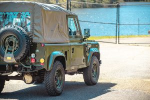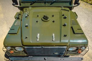 Originally finished in NATO Green, this Land Rover Defender Wolf still wears the glossy Bronze Green finish it received during its refurbishment for The Queen’s birthday. As a military vehicle, it was fitted with the MoD-preferred 2.5 Liter 300TDi engine mated to a R380 5-speed gearbox. The 300TDi was easier to maintain in the field over the more powerful but complicated Td5. Apparently Land Rover couldn’t guarantee the Td5 would survive the electromagnetic pulse from a nuclear detonation, a desirable trait in worst-case scenarios.