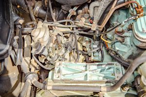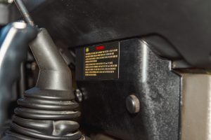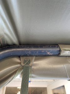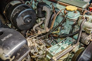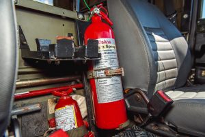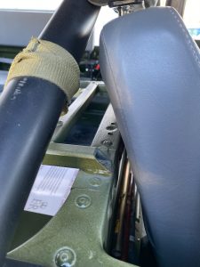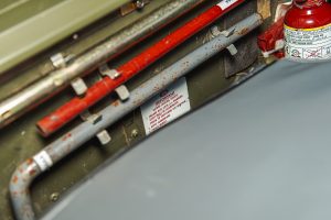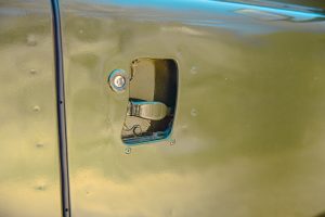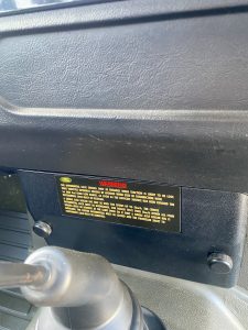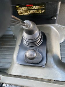 The gray cloth seats were refurbished in 2016, and are in overall good condition with a very small poke on the passenger seat. Some interior finishes and surfaces exhibit paint chipping and moderate wear.
