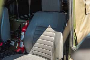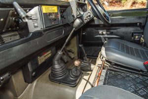 All Land Rover Defender Wolfs have 24 volt electrical systems and to ensure this Wolf was tip-top for parade duty, it was fitted with new headlamps and guards, side and tail lamps and a new alternator. Rear fog lights improve visibility in hazy conditions. Want to travel discreetly in a train of fellow Wolf Defenders? Activate the military-specific convoy lighting mode from the lighting panel.
