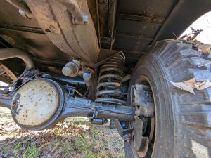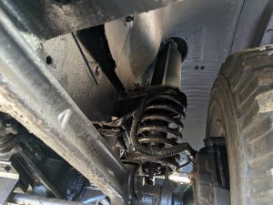 All Land Rover Defender 90 Wolf vehicles utilized a coil spring suspension uprated for military use, plus significantly reinforced axles as the standard units couldn’t survive military testing. New suspension rubbers and shocks were installed during refurbishment in 2016.