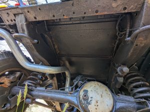 The chassis is a well-known corrosion point on vintage Land Rovers, but this car was treated to wax injection of the chassis and bulkhead, plus Waxoyl underseal on all underbody components as part of the military’s REMUS upgrade program.