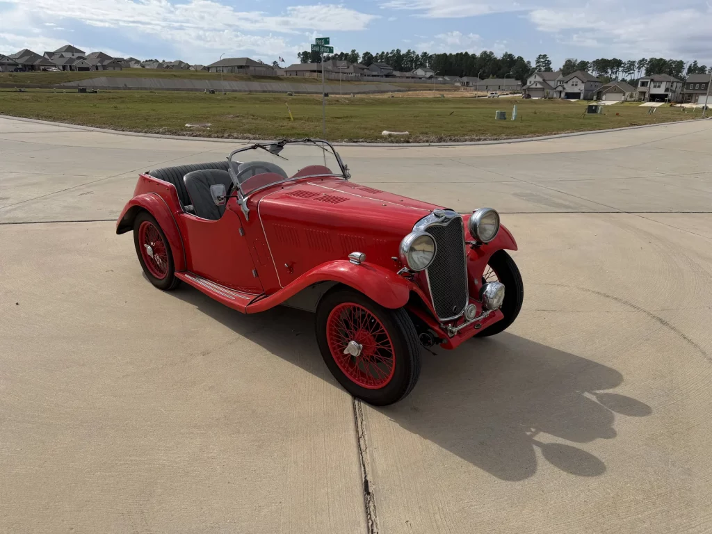 The Singer Nine replaced the Singer Junior and features a 972cc overhead cam engine pumping out a whopping 26.5hp. The Nine Le Mans was produced from 1933 to 1937 and used a higher tuned version of the inline-four and a larger capacity oil sump. Horsepower was uprated to 34 and a low-slung chassis provided a lower center of gravity. For 1935, the Le Mans received a four-seater option with a streamlined rear end, which is what this car resembles. The year of production is wrong for a Le Mans Four Seater, so some authentication work is advisable here. Regardless, it’s a pre-war car that can reach up to 66mph at full tilt.
