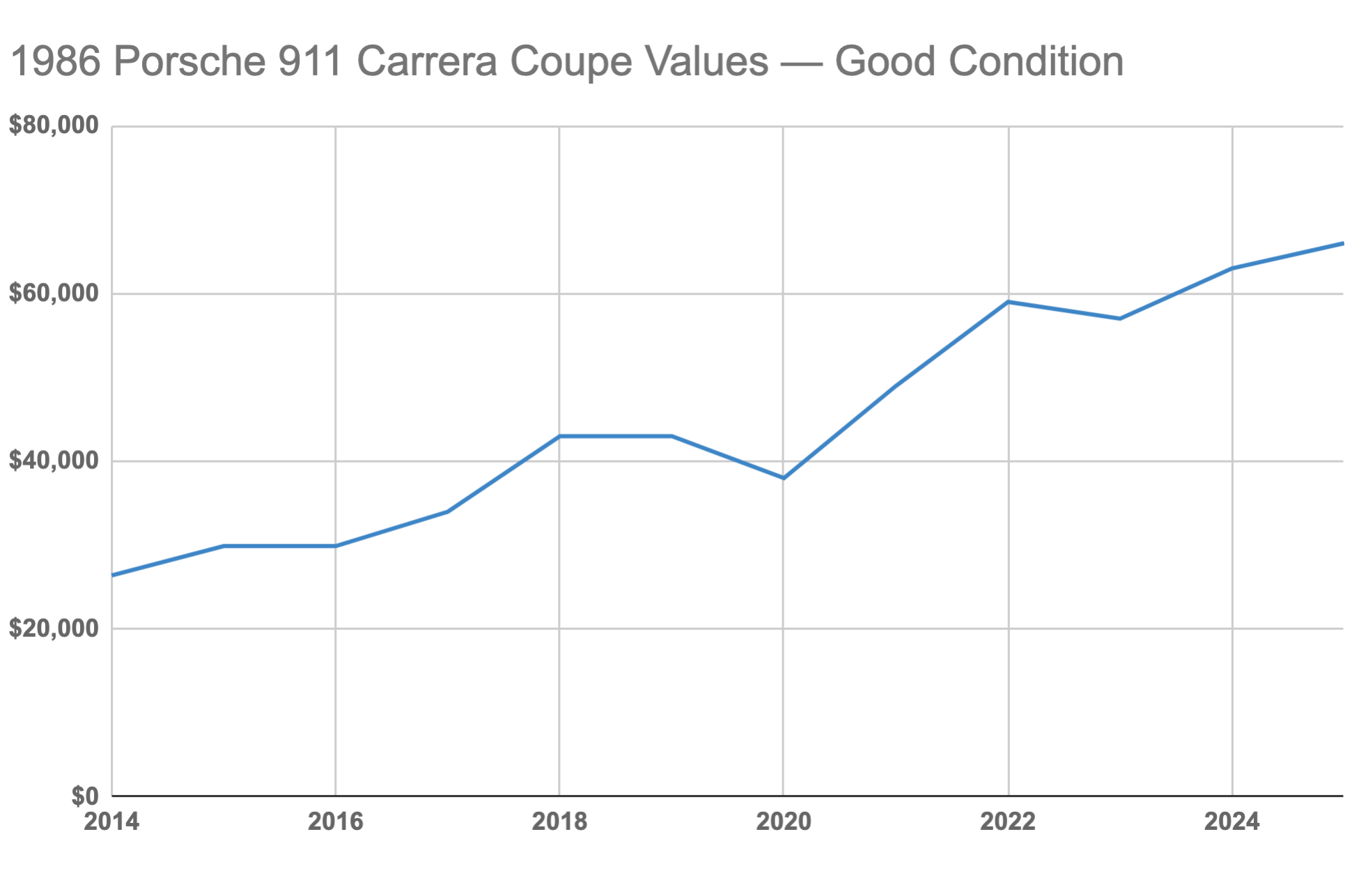 For late-model and new cars, the most popular colors are black, white and silver. Most 1986 Porsche 911 Carrera Coupes sold are finished in red, black, or white, which were the preferences of the time. Blessedly, Porsche collectors increasingly appreciate unusual shades on these cars and are willing to pay a premium.