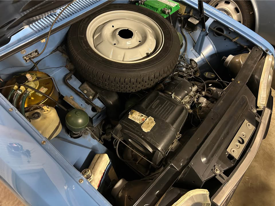 Rust and corrosion in the engine bay seem to be at a minimum, with good finishes on the engine components and an overall very tidy and clean presentation. The engine displacement isn’t noted in the description, but it’s mated to a 4-speed manual transmission.