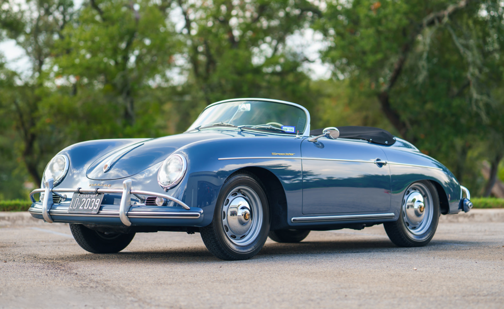 1955 Porsche 356 Pre-A Speedster — Sold at no reserve for $240,800 against a market average of $363,000. This car’s average condition and modifications including non-original blue paint, non-matching engine and aftermarket exhaust were the main drivers of the lower price here.