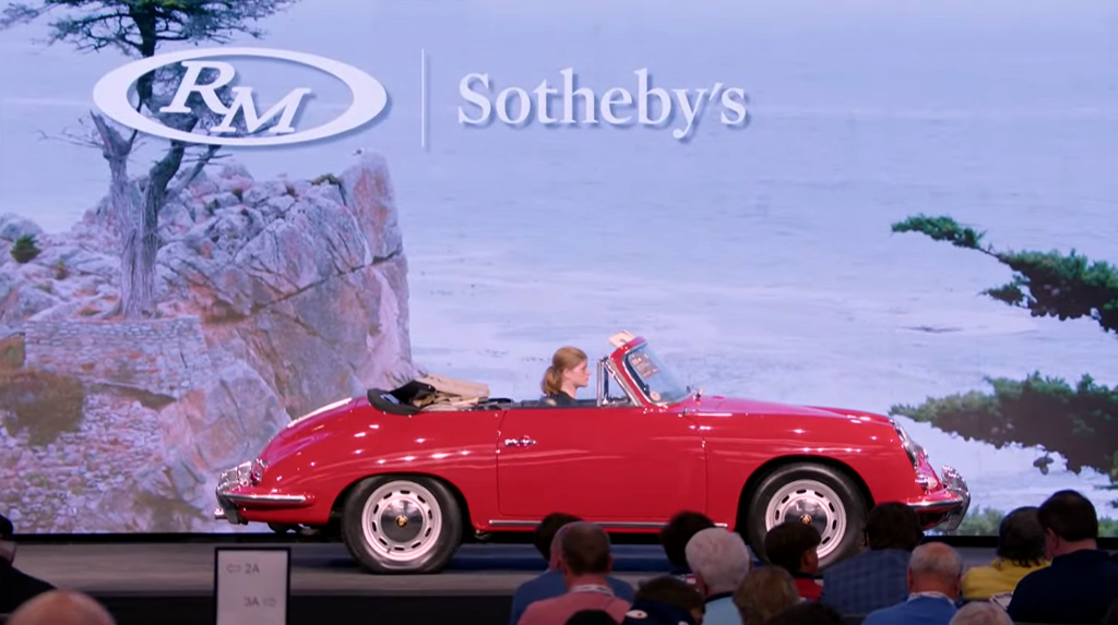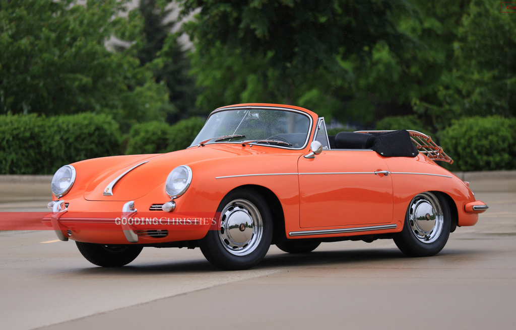 1965 Porsche 356C Cabriolet — Sold at no reserve for $168,000 against a market average of $150,000. A final year Cabriolet painted in its original combo of Ruby Red over black leather. The car is numbers-matching and is a well-preserved older restoration with a new black top. With the buyer’s premium, this car is about right where it should be and is a nice, honest 356.