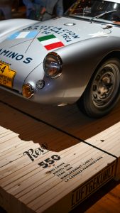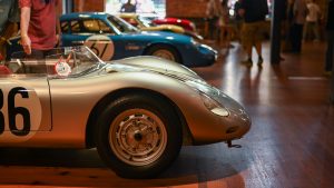 A static display of incredible Porsche cars from the brand’s incredible history would be a blast on its own, but the Luft team knows their audience. Porsche people are monied people, and generally enjoy exclusive experiences. For example, VIP and Premier ticket-holders received access to a special “1948 Lounge” experience sponsored by Tag Heuer. This display included amazing cars like Bobby Rahal’s Champagne Yellow Porsche 914 race car and Revs Institute’s 550-01 Spyder surrounded by beautiful watches and included an access-only mezzanine to take in the view and refreshments.