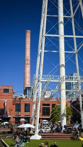 The sprawling American Tobacco Campus in Durham, North Carolina, was originally built in the late 19th and early 20th centuries as part of the American Tobacco Company’s manufacturing operations. After the factories closed in the 1980s, the site remained largely vacant until a major redevelopment effort began in the early 2000s. The project preserved many of the original brick structures while converting them into offices, apartments, restaurants, and public spaces. Today, the campus serves as a mixed-use district that anchors downtown Durham’s economic and cultural activity, with the Durham Bulls Athletic Park and Durham Performing Arts Center located nearby.