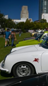 With a confined space and commitment to artistic curation, car show participants are vetted before tickets are awarded. Two tiers are available, with the more costly Premier level providing a prominent car location and extras such as a pre-event party. The Feature level is more cost-effective and gets you a parking spot within the event and admission for yourself and a guest. Car show entries go fast and are limited to air-cooled Porsche cars only, but if you miss the opportunity you can purchase a spectator ticket. I saw loads of spectator and early entry bands during the event.