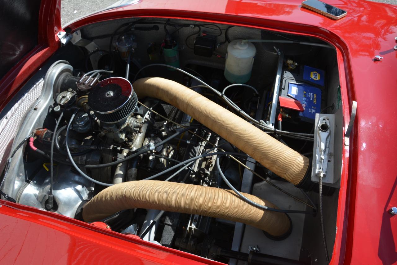 Looking at the engine bay, one can see how far forward the air-cooled engine has been placed. The Panhard engine in these cars is quite interesting: One-piece connecting rods rotate a roller-bearing crankshaft, and the combustion chambers are hemispherical with torsion-bar spring-operated valves. The listing notes a fair bit of mechanical maintenance performed on the engine, which is a 52hp 851cc unit.