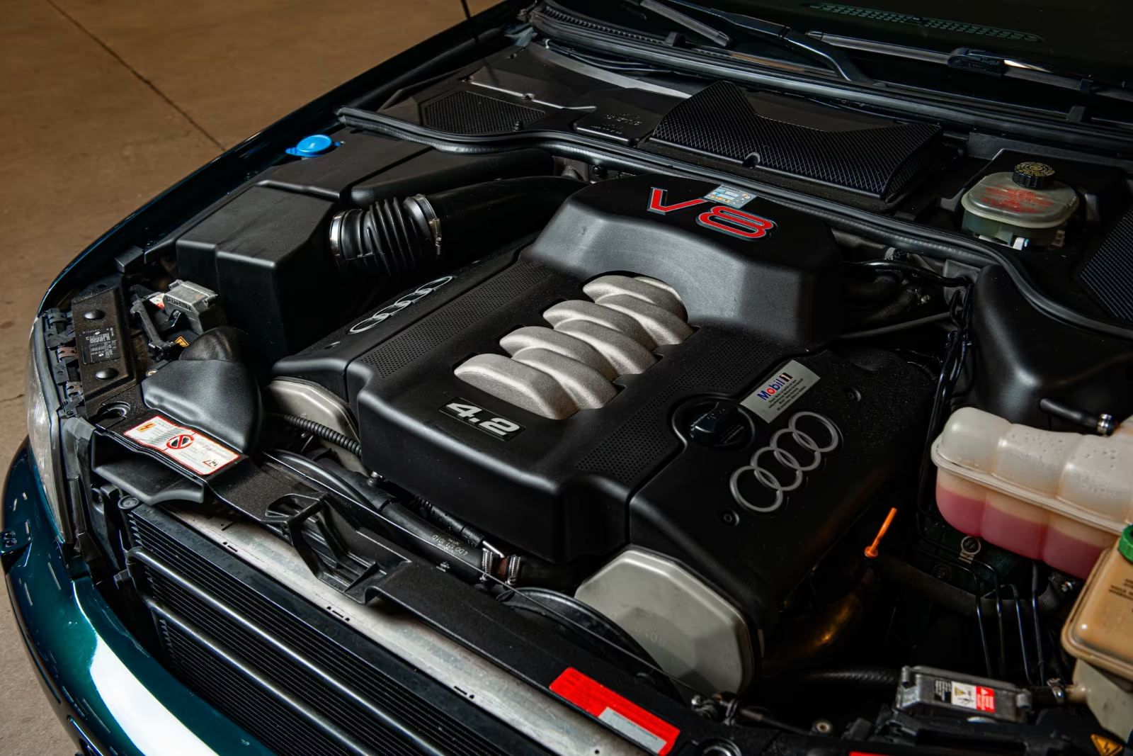 Aluminum multi-spoke wheels were cribbed from the design of the Audi Avus concept car and match those used on the car piloted by getaway driver Larry in Ronin. The engine bay is nicely detailed, which is not typical of many of these cars. Like all luxury German automobiles, the S8 was expensive to maintain and many were abused or modified by subsequent owners.