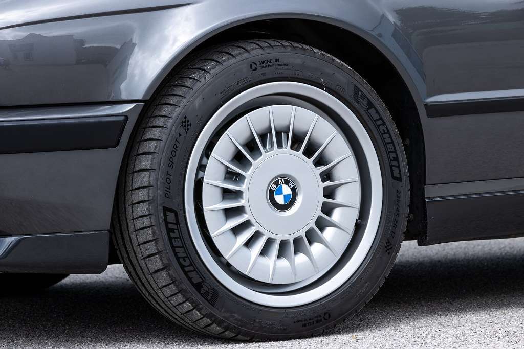 “Turbine” style wheels are mounted to this car, which matches the M5-style vehicle featured in Ronin. Other options included the “throwing star” style wheels and M-Parallels. Basketweave wheels were occasionally seen as well.